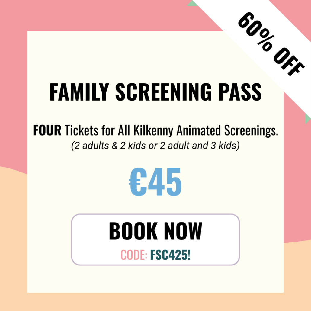 To avail of your exclusive Kilkenny Animated Hotel Guest Screening Discount, simply select any five screenings you’d like to attend. Once they’re in your cart, just enter your discount code at checkout!
